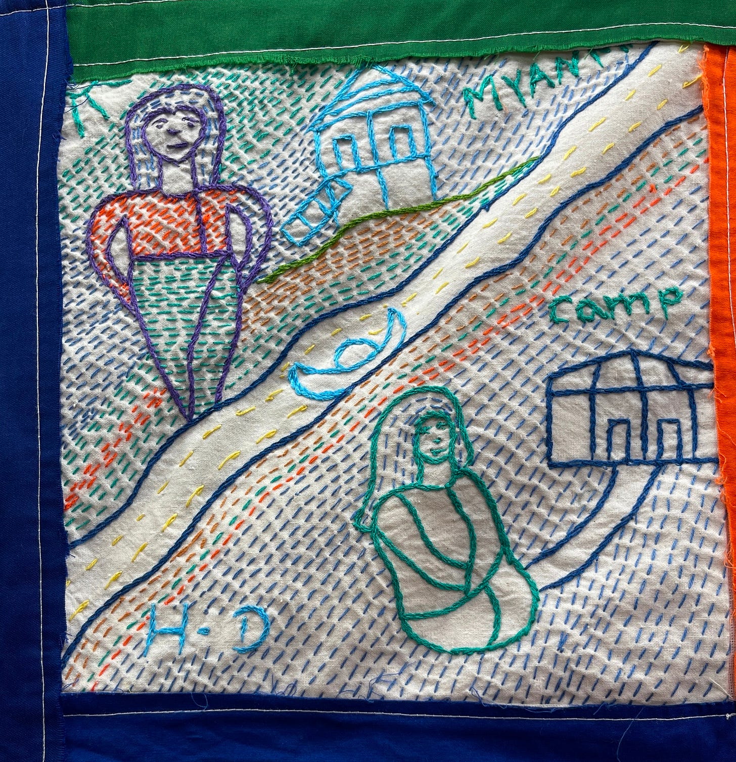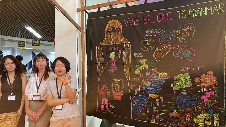 Chiang Mai is a significant hub for Burmese academics and students, primarily through Chiang Mai University and the Regional Center for Social Science and Sustainable Development. It is through this department that I was able to make connections with a Rohingya women’s rights project that took place in Cox’s Bazar. Chiang Mai University hosted an exhibition based on the work that the non profit Asia Justice and Rights has done with more than 100 Rohingya women that they brought together to share their stories through the making of panels for quilts.